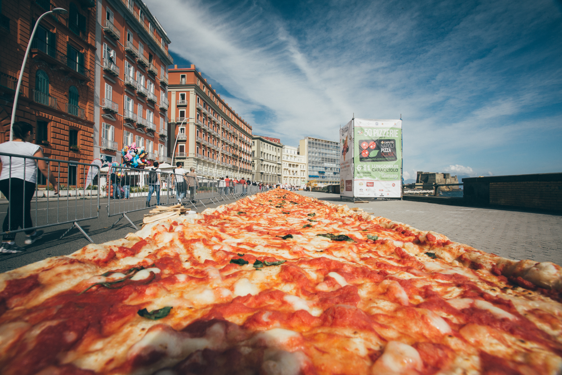 Non si possono dimenticare le immagini trasmesse dai telegiornali delle tv di tutto il mondo, in cui era immortalata la pizza più lunga del mondo che consentiva a Napoli ed al Napoli Pizza Village di entrare nella storia con il riconoscimento del Guinness World Record per una pizza lunga 1853,88 mt. Migliaia di pizzaioli, napoletani e provenienti da ogni continente, lavorarono sul Lungomare partenopeo in un’impresa titanica ancora viva nei cuori di quanti vissero quella magnifica giornata.