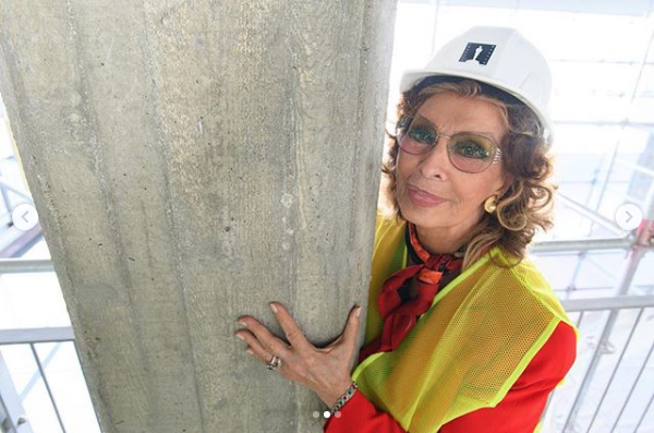 L’ingresso della struttura consisterà in un grande colonnato ed ognuna delle colonne sarà dedicata ad una diva del mondo del cinema. Ovviamente la prima di queste colonne non poteva che essere dedicata alla nostra Sophia. Sul profilo Instagram dell’attrice statunitense Laura Dern sono apparse alcune foto di Sophia Loren mentre sostiene materialmente la sua colonna.