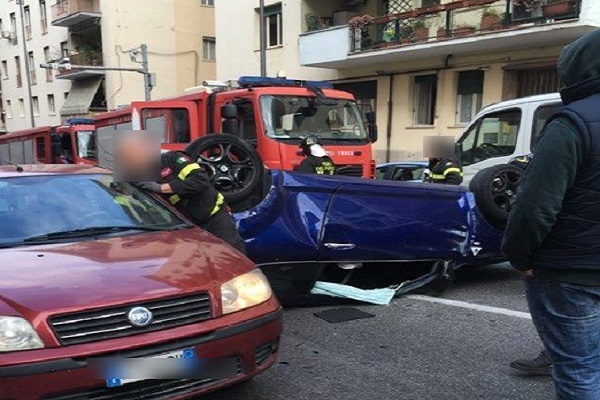 Spaventoso incidente al Vomero. Poco dopo le 9 di questa mattina una vettura si è ribaltata sul ponte che collega via Scarlatti a via Cilea.