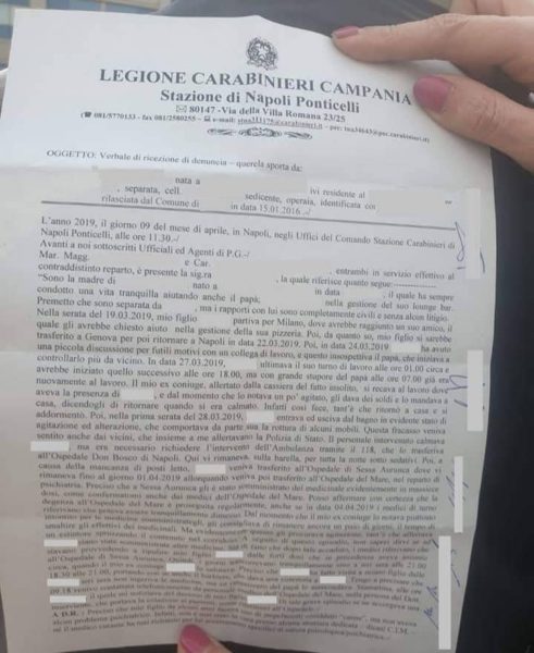 Il ragazzo, che faceva regolare uso di cannabis, era stato ricoverato il 28 marzo presso l’Ospedale San Giovanni Bosco perchè in maniera inspiegabile aveva distrutto l’abitazione in cui abitava. Dopo poco era stato trasferito all’ospedale di Sessa Aurunca dove gli era stata somministrata una massiccia terapia a base di psicofarmaci. Il primo aprile era stato poi trasportato all’ospedale di Ponticelli, dove aveva già mostrato segni di netto miglioramento tanto che i medici erano pronti a dimetterlo entro il 4 aprile. Ma il padre aveva richiesto ai medici di trattenere il figlio ancora per alcuni giorni. Eppure nonostante il giovane mostrasse segni di miglioramento psicofisici, è stato trovato morto dopo alcuni giorni.