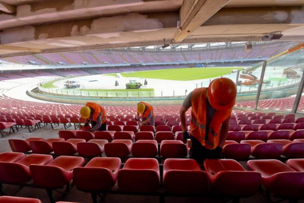 Continuano i lavori di ristrutturazione dello stadio San Paolo in vista delle Universiadi, manifestazione sportiva che si terrà dal 3 al 14 luglio a Napoli e in Campania. Si lavora, senza sosta, principalmente per sostituire i vecchi seggiolini dell’impianto di Fuorigrotta con altrettanti nuovi, di colore azzurro.