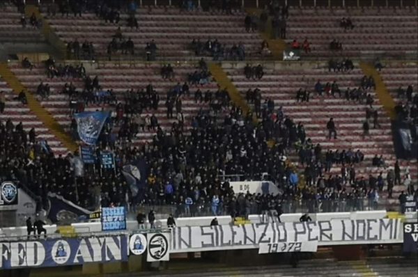 FOTO. Lo striscione degli ultras della Curva B: “In silenzio per Noemi”