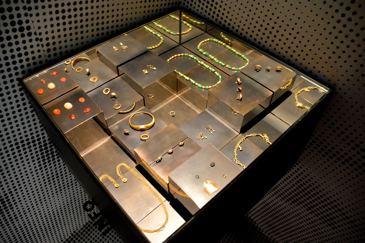 Monili dell’area cicladica e pompeiana sono messi a confronto in un elegante percorso di stili e di civiltà, che trova nella vanità e nell’ostentazione della ricchezza un punto in comune. Gemme, collane, fibule, orecchini, anelli e armille in oro, argento, bronzo, con inserti in materiali preziosi e semipreziosi (avorio, pietre, paste vitree, corallo, perle, ecc.), provenienti da Delos e dalle altre Cicladi, saranno esposti accanto a gioielli rinvenuti a Pompei, ma anche in altri siti campani, tra cui Longola, Sarno, Paestum, Oplontis, Terzigno ed Ercolano.