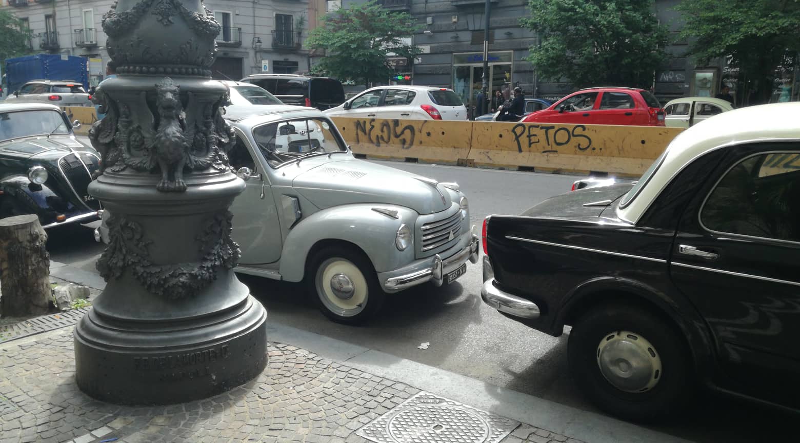 Macchine e bus d’epoca, nella giornata di ieri venerdì 10 maggio fino ad oggi 11 maggio, restituiranno al Rettifilo l’atmosfera degli anni ’60. Per consentire le riprese, il corso Umberto è stato transennato su entrambi i lati e delimitato da alcune Strisce blu off limits. Sono state rimosse, inoltre, le segnaletiche stradali e le paline delle fermate degli autubus dell’ANM, che verranno nuovamente riposte dopo le riprese.