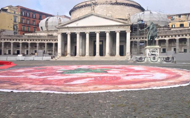 Come abbiamo già avuto modo di informarvi, è in corso di svolgimento a Napoli il Pizza Festival 2014. In occasione ti questo evento gli organizzatori hanno posato al centro di Piazza del Plebiscito la riproduzione stampata su tessuto di un’enorme pizza Margherita.