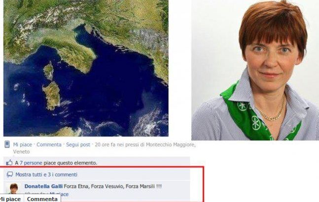 La questione giudiziaria richiama una vicenda accaduta tempo fa. Facciamo riferimento a quando la Consigliera Galli scrisse su Facebook delle frasi razziste contro i meridionali. “Forza Etna, Forza Vesuvio, Forza Marsili!” si poteva leggere nel post, con sopra allegata una cartina dell’Italia dalla quale era stato eliminato il Sud.