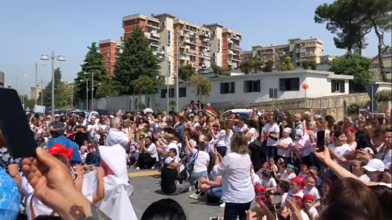 Scuole in marcia a Scampia, il quartiere periferico di Napoli rimasto tristemente noto in tutta Italia. Questa volta però, a levarsi dalla folla di bambini è un messaggio di speranza e di vita.