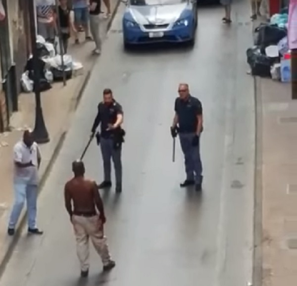La situazione è degenerata nel momento in cui l’uomo, in uno scatto improvviso, ha aggredito uno dei poliziotti. Immediata la risposta forze dell’ordine: i poliziotti si sono difesi colpendo a loro volta l’extracomunitario e invitandolo ancora una volta a fermarsi. Insieme a loro, altri due extracomunitari hanno cercato a lungo di tranquillizzarlo. Dopo diverse sollecitazioni, l’uomo ha finito per accasciarsi a terra.