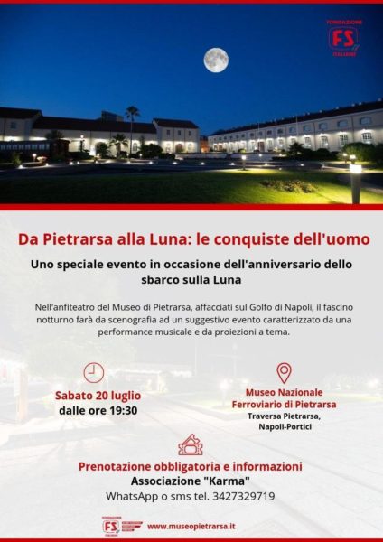 Napoli – “Da Pietrarsa alla Luna” è una serata speciale, sabato 20 luglio, concepita per celebrare le conquiste dell’uomo attraverso il progresso tecnologico.