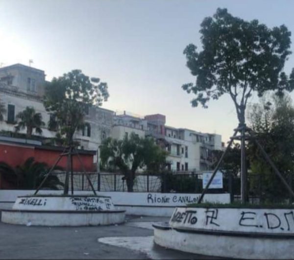 Un atto di forza e di prepotenza che è stato subito condannato, anche perchè eseguito in un luogo dedicato all’infanzia e ai bambini. Subito è intervenuto il sindaco della città di Ercolano, Ciro Buonajuto, che con un post su Facebook ha detto: