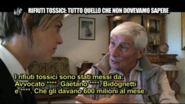 Nonostante la reticenza di Mancini nello svelare il nome delle aziende coinvolte nello sversamento dei rifiuti, nel corso del servizio rilascia una dichiarazione preziosa sulla natura di tali aziende e società: «Bisogna tenere presente che sono al massimo 20 le persone che gestiscono il ciclo dei rifiuti in Italia. Sono imprenditori, colletti bianchi, molti al nord e hanno rapporti con i proprietari delle discariche per attestare falsi smaltimenti e bolle falsificate. Tra le aziende erano coinvolte società di dimensioni nazionali che producevano elettrodomestici, concerie, compagnie petrolifere e società siderurgiche. Le società di cui parlo sono ancora nel mercato».