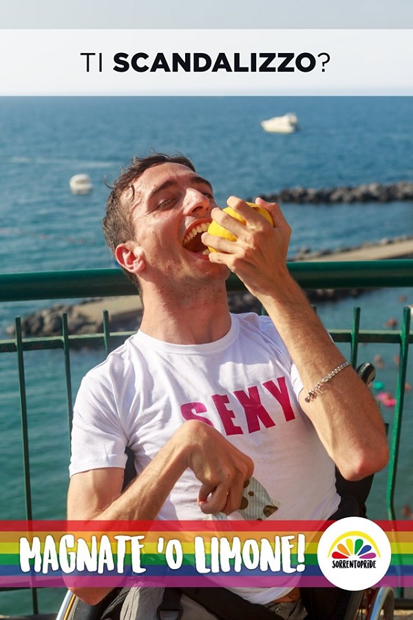 Il comitato ha lanciato una campagna che è subito diventata virale. 8 scatti che rappresentano diverse persone che potrebbero aver subito un giudizio negativo. Vengono rivolte delle domande ai potenziali interlocutori, con una risposta semplice, diretta e incisiva: magnate ‘o limone. L’espressione tipicamente napoletana sta ad indicare la necessità di non nascondersi più e di non piegarsi dinanzi ai pregiudizi. A costoro con tale espressione viene rivolto un messaggio chiaro, spiegato sulla pagina ufficiale del Sorrento Pride: