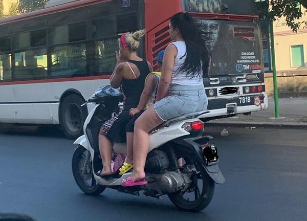 Sempre più spesso vediamo in giro scene folli sui motorini. E molte volte ci sono anche dei bambini innocenti coinvolti. Già perché se un padre, come in questo caso, decide di portare moglie e due bambini su uno scooter la colpa non è di certo dei piccoli. Purtroppo in questo modo non si attuano solo atti illegali ed infrazioni stradali, ma si travisa la mente del bambino su cosa sia giusto e cosa no.