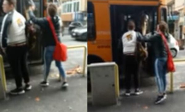 È impressionante, in effetti, osservare come i due ragazzi si sentano padroni di provocare potenziali danni all’autobus e anche di minacciare pesantemente il conducente dell’autobus. Uno dei due chiede a gran voce un documento, non si capisce per quale ragione, e l’autista non esita a rispondere per le rime.