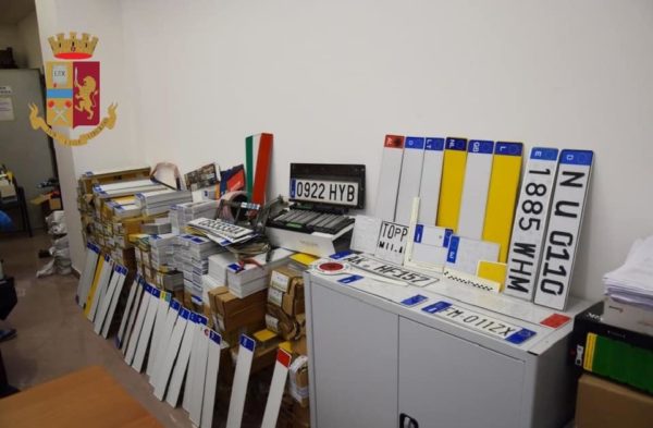 SANTA MARIA LA CARITA’ – Smantellata un’officina che produceva targhe false. Mercoledì 6 novembre gli agenti del Commissariato di Castellammare di Stabia ha fatto irruzione in immobile di Santa Maria la Carità scoprendo ben 7.000 targhe false, per lo più straniere, molte delle quali pronte per essere commercializzate nel mercato clandestino delle auto rubate.