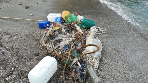 Gaiola, rinvenuta la carcassa di un delfino intrappolata nella plastica e nelle reti da pesca