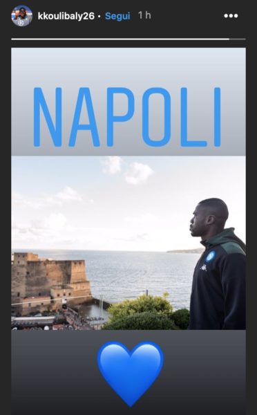 Koulibaly ha poi ribadito il concetto postando una storia con la scritta ‘Napoli’ e un cuore rigorosamente azzurro.