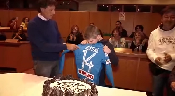 L’altro ieri Luca ha potuto lasciare l’ospedale e tornare a casa. Il primo cittadino ha accolto il piccolo guerriero nell’Aula Consiliare del Comune, con una grande festa con tutti gli amici ed i parenti. Tanti i regali: un subbuteo, un cappellino, una torta con su scritto “BENTORNATO LUCA” e persino una maglia autografata dallo stesso Mertens. Il sindaco ha promesso al piccolo di portarlo allo stadio con lui appena si sarà ripreso del tutto.