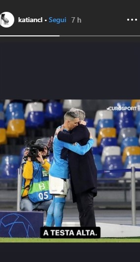 Esce senza macchia Carletto, proprio come ha scritto sua figlia in una storia su Instagram, che nel breve biografia sul social si definisce napoletana d’adozione. Katia Ancelotti ha pubblicato la foto dell’abbraccio tra il tecnico e Callejon, aggiungendo proprio la scritta “A testa alta”.