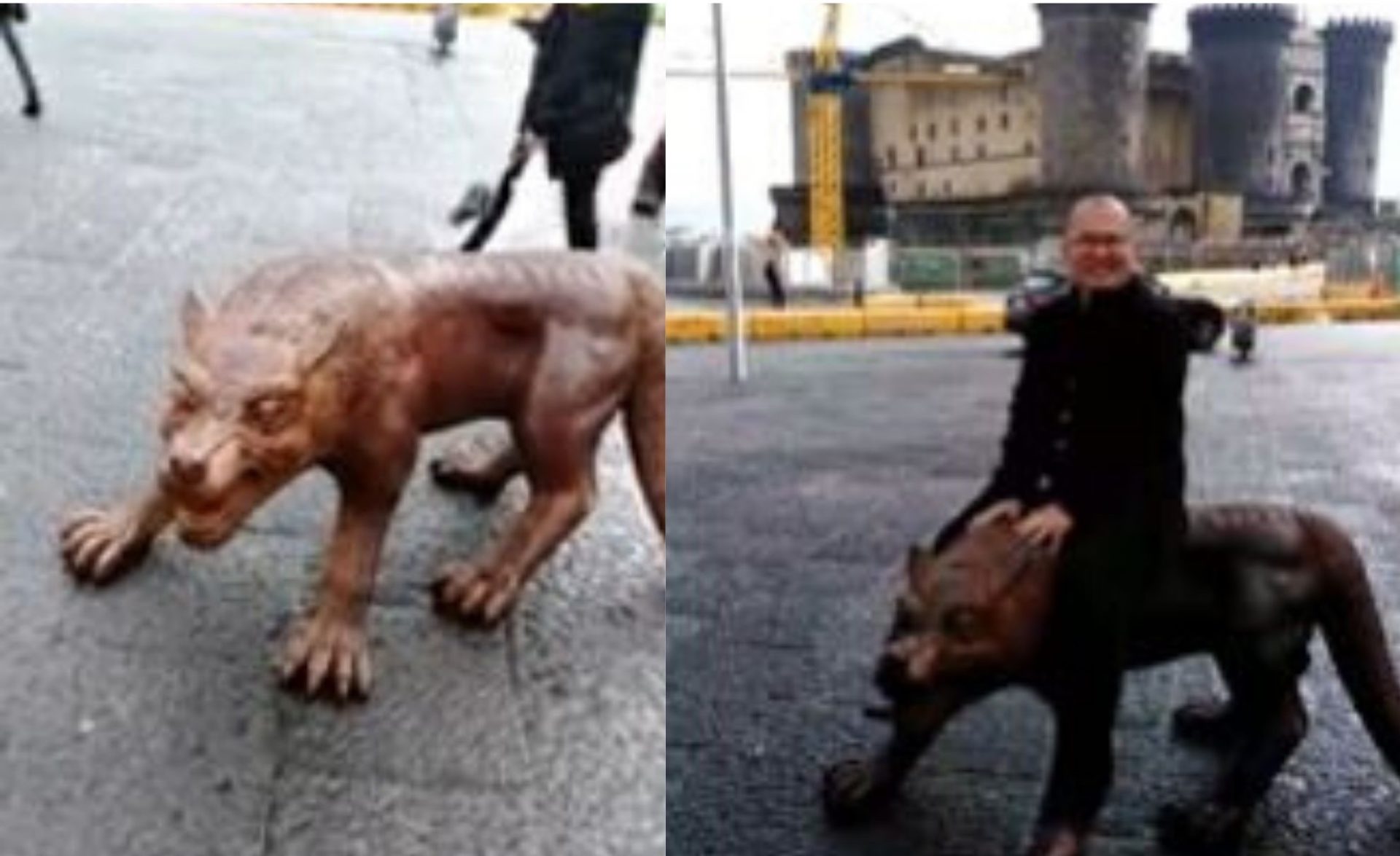 A Napoli, gli autori di questo atto vandalico hanno probabilmente agito di notte. I lupi, che originariamente puntavano tutti al centro della scena assediando un cacciatore, ora sono stati girati dal lato opposto, messi in fila o avvicinati tra loro. Il muso di uno dei lupi, per di più, è stato imbrattato con vernice rossa.