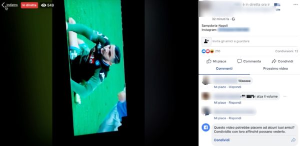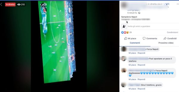 Lo schema è sempre lo stesso: riprendere con il proprio cellulare la partita allo schermo e postarla in diretta su vari gruppi di tifosi del Napoli.
