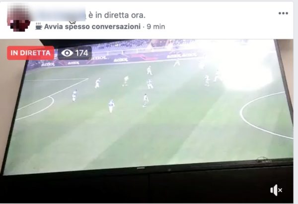 PARTITE SU FB – Un contrasto che ad oggi però non sembra riguardare una delle piattaforme social più usate al mondo: Facebook. Dalla sua nascita nel 2004, con 34,8 milioni di utenti unici, Facebook si conferma essere il social maggiormente frequentato. E a dirlo sono gli ultimi dati diffusi dall’Agcom ad aprile di quest’anno: 42,5 milioni di utenti medi giornalieri che si sono collegati alla rete, per un totale di 75 ore di navigazione mensile a persona. Ed è proprio su Facebook che spesso, inconsapevoli dei rischi e del fatto che stanno commettendo un reato, persone comuni decidono di riprendere con i loro smartphone le partite a pagamento alla tv postandole in diretta in alcuni gruppi.