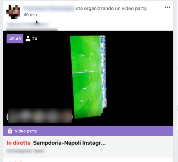 La prima gara analizzata è stata Sampdoria-Napoli di lunedì 3 febbraio delle ore 20.45. Numerosi gli utenti che trasmettevano la partita in diretta in un gruppo Facebook di tifosi azzurri che conta più di 70 mila iscritti. Una sola diretta è arrivata ad avere online quasi 600 persone.