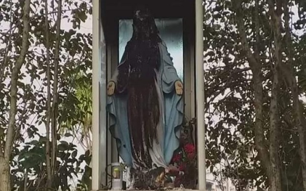 Intanto è partita la caccia ai responsabili che hanno sfregiato la statua sacra.
