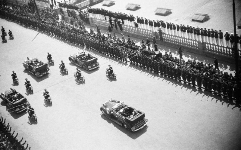 «Il padre di un mio amico – racconta Ocone – raccontava che durante la visita di Hitler a Napoli nel 1938 un folto pubblico fu schierato lungo via Caracciolo, in attesa del suo passaggio su una macchina scoperta. Quando il Fuhrer passò in piedi nella macchina e tese il braccio nel saluto nazista, una voce dal pubblico non identificata ruppe il silenzio della cerimonia dicendo: Sta verenn’ si for’ chiove (sta controllando se fuori piove). In quel momento suo padre capì che il totalitarismo non avrebbe mai potuto conquistare l’animo dei napoletani. E probabilmente proprio per quel senso innato dell’ironia, quella capacità di non prendersi troppo sul serio».