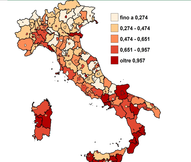 Leggendo i dati Istat notiamo che persiste ancora, sebbene in controtendenza, lo storico dualismo Nord-Sud. Una forbice che dal 1990 va assottigliandosi soprattutto grazie al calo di omicidi commessi dalle mafie. Il tasso nazionale di omicidi commessi, secondo solo al Lussemburgo in Europa, è di 0,57% con il Mezzogiorno che fa registrare uno 0,83% quasi il doppio del Centro-Nord fermo allo 0,43%. Se consideriamo le sole aree settentrionali i numeri sono molti simili. Nel Nord-Ovest la percentuale è dello 0,45%, nella parte Est è leggermente più bassa allo 0,42. È il Centro a far scendere la tendenza nazionale con lo 0,37%.