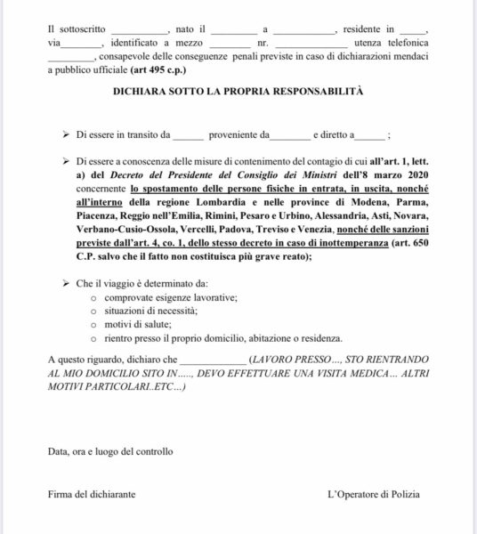 Lombardia e 14 province off limits: per andarsene basta un’autocertificazione