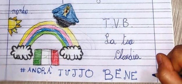 “Mi stringe forte quando fuori piove a di rotto, per me lui è il più coraggioso poliziotto. La vita con te è un girotondo, e il mio bene per te è grande come il mondo”, ha concluso Claudia, in rima baciata, disegnando anche un grande arcobaleno, con sopra il cappello che porta suo padre per mestiere, ricordando a tutti, inconsciamente, il grande lavoro della polizia in questo momento.