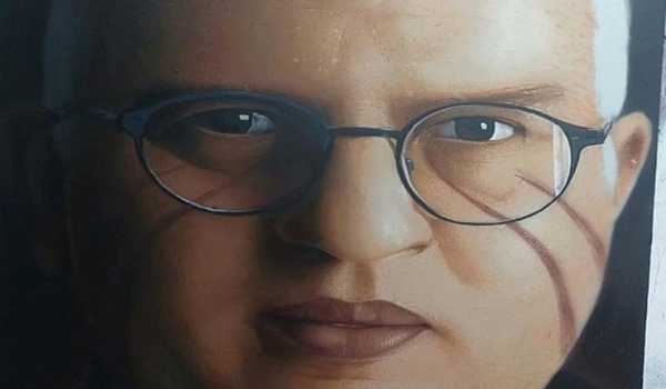 Il medico è ritratto coi segni sulla guancia della “Human Tribe”, tipico marchio di riconoscimento nei volti di Jorit.