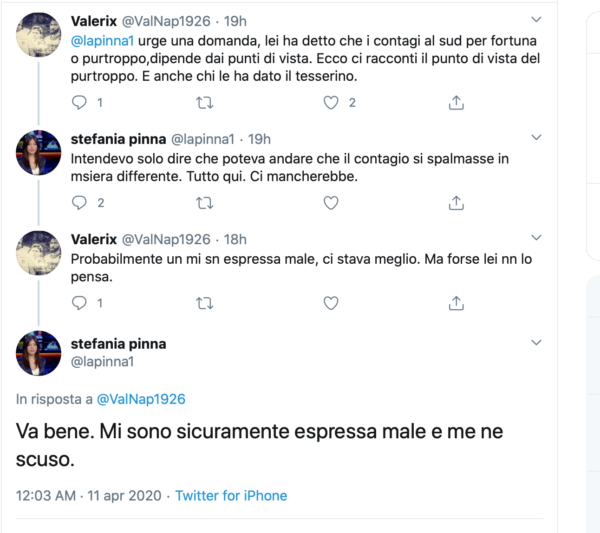 “Intendevo solo dire che poteva andare che il contagio si spalmasse in maniera differente. Tutto qui. Ci mancherebbe”.
