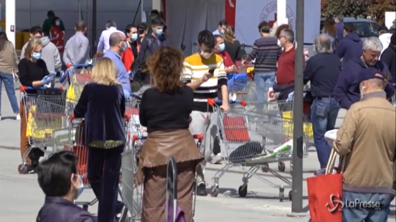 Fotogramma del video pubblicato da LaPresse il giorno 11 aprile 2020. Siamo a Milano, all'esterno di uno store Esselunga