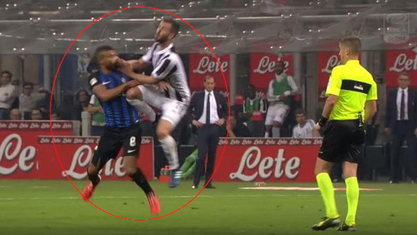 Il centrocampista bianconero, già ammonito, commise un brutto fallo su D’Ambrosio: meritava l’espulsione e fu graziato, mentre il giocatore dell’Inter fu ammonito per proteste. La Juventus conservò così quella superiorità numerica che le consentì prima di pareggiare e poi di vincere.