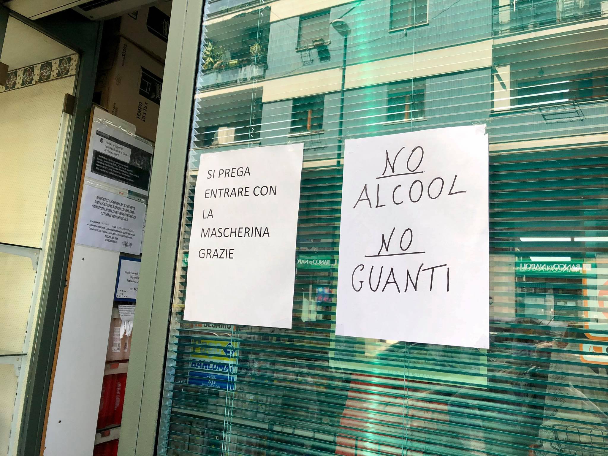Da quel momento le mascherine non sono più diventate un oggetto raro da trovare. I banchi di farmacie e negozi ne sono infatti pieni. Ma a mancare ora sono altri due prodotti necessari per l’igiene e la sicurezza personale: l’alcool e i guanti. Fuori dagli esercizi commerciali in molti hanno esposto un cartello per evitare file inutili all’ingresso: