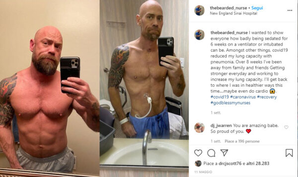 “Volevo mostrare a tutti quanto possa essere duro stare in terapia intensiva per settimane. Il coronavirus ha ridotto le mie capacità polmonari. Sono stato via per più di 8 settimane dalla mia famiglia e dagli amici. Ora divento ogni giorno più forte, e tornerò allo stato di prima“.