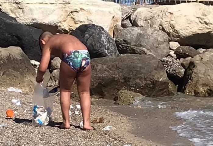 Allorché mio figlio, un bambino di appena 7 anni (molto arrabbiato e deluso) ha voluto una bustina ed “armato” di palettina ha deciso che i rifiuti andavano tolti per non inquinare il mare e così abbiamo dato la caccia a rifiuti e mozziconi di sigarette!