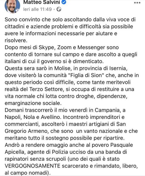 L’ex ministro ha scelto di far visita alla nostra città per incontrare gli artigiani del presepe di San Gregorio Armeno, dimenticati dallo Stato durante la pandemia. Dopo si recherà ad omaggiare l’agente di polizia ucciso da una banda di rapinatori, Pasquale Apicella.