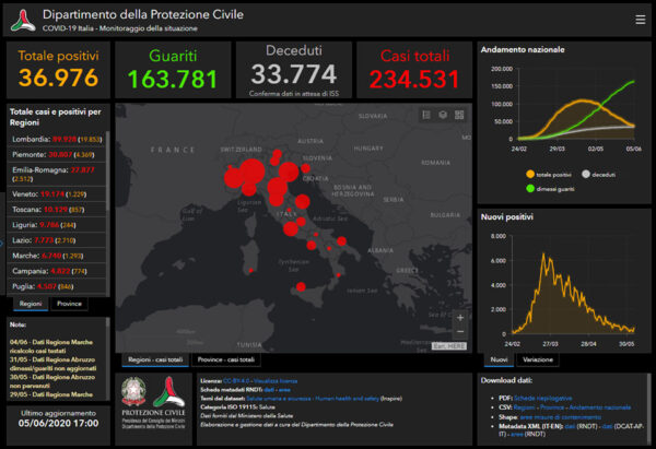Continua l’impegno del Dipartimento nelle attività di coordinamento di tutte le componenti e le strutture operative del Servizio Nazionale della protezione civile. In particolare, nell’ambito del monitoraggio sanitario relativo alla diffusione del Coronavirus sul nostro territorio, a oggi il totale di persone che hanno contratto il virus è di 234.531, con un incremento rispetto a ieri di 518 nuovi casi.