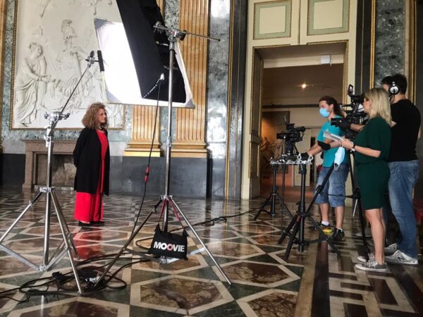 Le foto ritraggono la direttrice Tiziana Maffei insieme alla troupe.