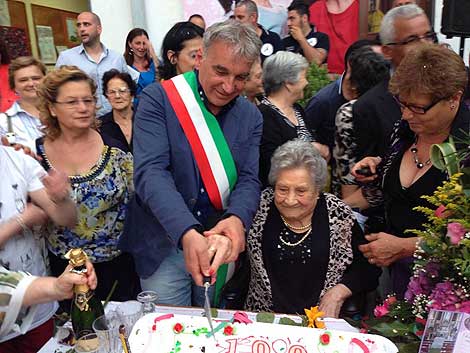 La signora Maria Ferriero, di Sant’Anastasia, ha compiuto cento anni, qualcosa che nella cittadina è stata vissuta come un vero e proprio evento. La festa è consistita in una messa celebrata da padre Giacomo Varrengia della parrocchia di Sant’Antonio, durante la quale vi è stata la lettura di una pergamena da parte del neo sindaco Raffaele Abete, e di una lettera da parte di una delle sette figlie della donna centenaria. A seguire un buffet offerto dalle figlie a tutta la comunità parrocchiale, al sindaco, ai consiglieri e ai futuri assessori, culminato col taglio della torta avvenuto insieme al primo cittadino, il quale ha avuto poi modo di pronunciare queste parole: