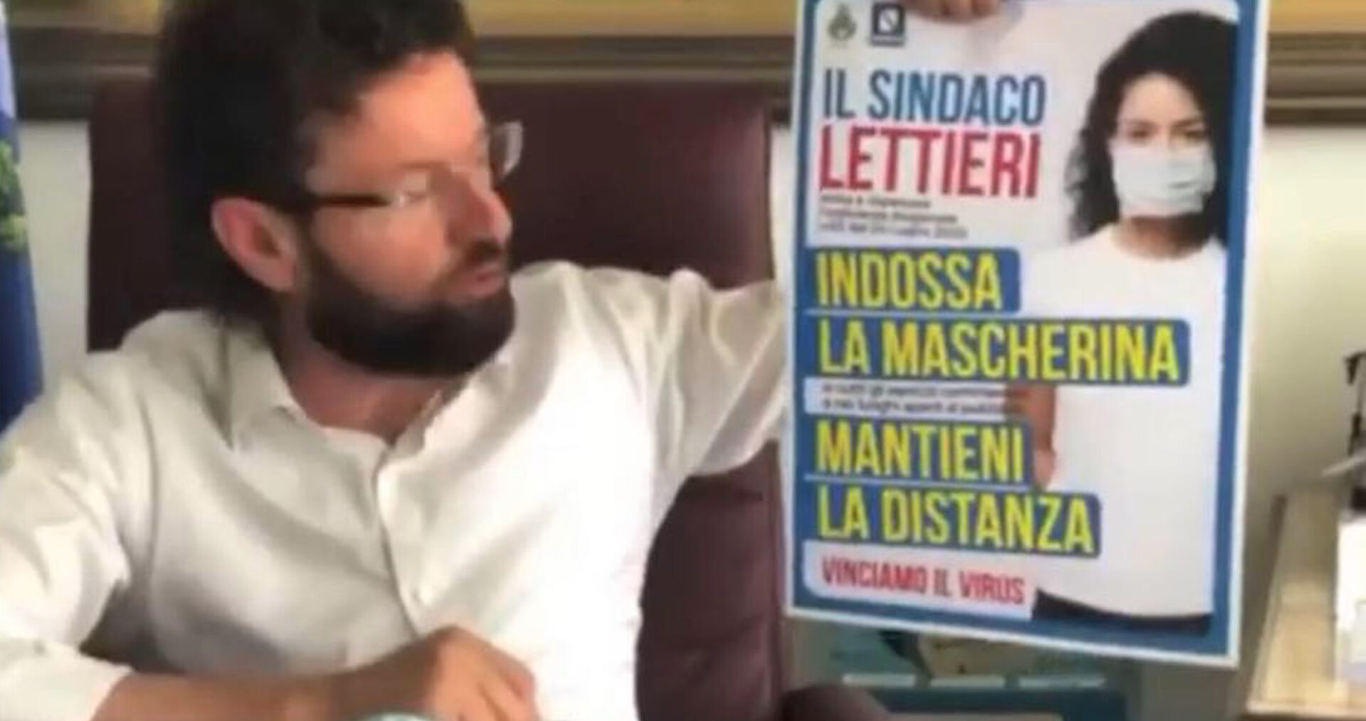 Nel video il primo cittadino mostra la locandina diffusa in città che chiede il rispetto della nuova ordinanza di De Luca: