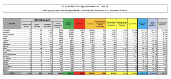 Covid in Italia: +1585 casi, Lombardia e Campania le Regioni più colpite. Il bollettino del 17 settembre
