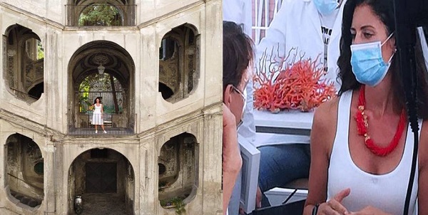 “Napoli è un set a cielo aperto in ogni dove. – dice la conduttrice Daniela Ferolla – Nel bene e nel male. Con il suo mare, la costa, le sue ville che hanno ispirato dei grandi come Oscar Wilde e tanti altri… Questo è palazzo San Felice protagonista di tantissimi film che con la sua scala simbolicamente divide i “due mondi”, da una parte la natura rigogliosa dei suoi giardini e dall’altra la città con il suo fermento (ammoina in Napoletano). Una città che mi regala sempre una grande carica di adrenalina, anche oggi che c’erano 40 gradi all’ombra!!!”
