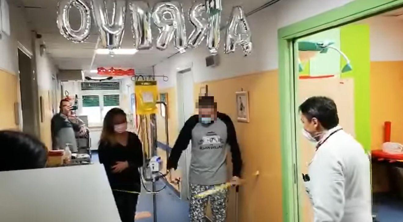 NAPOLI – L’ospedale Santobono festeggia un suo piccolo paziente. Carmine, un ragazzo 15 anni, ha celebrato nel suo reparto, in compagnia di medici e familiari, la fine della sua terapia. L’ospedale partenopeo ha condiviso un video della breve festa sui propri profili Facebook e Instagram.