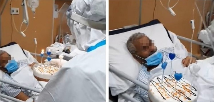 Il filmato parla da sé. Basta guardarlo per percepire il senso di profonda umanità che anima il personale e la gratitudine del festeggiato. Gli infermieri fanno il loro ingresso in camera al suon di ‘Tanti auguri a te’, sorreggendo tra le mani una torta dalle candeline, a forma di cuore, accese.