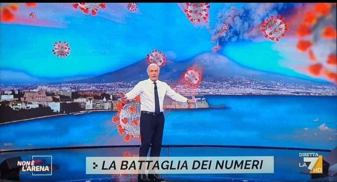“Sono arrivate, ancora, numerose segnalazioni allo Sportello ‘Difendi la Città’ per l’immagine del Vesuvio che erutta Coronavirus mostrata nella trasmissione “Non è l’Arena” su La7. “Lavali col fuoco” non è poi tanto diverso da “infettali col virus”. Brutta l’immagine, bruttissimo il messaggio che suggerisce. Ne chiederemo conto, come sempre”.