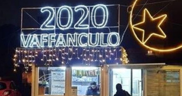 Tra questi ci fa però sorridere ed allo stesso tempo riflettere l’addobbo del benzinaio di via Domenico Fontana contro il Coronavirus. La scritta è molto eloquente e nonostante non sia presente un termine legato al covid si lascia capire alla perfezione. Anno 2020 e coronavirus vanno infatti a braccetto: “2020 Vaff*****o“.